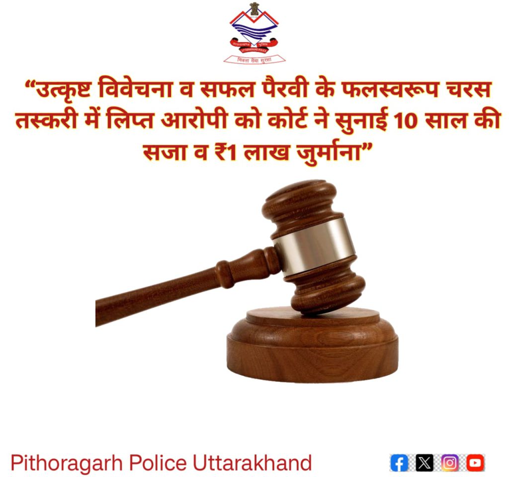 सुनवाई उपरांत आज विशेष सत्र न्यायाधीश पिथौरागढ़ शंकर राज द्वारा अभियुक्त को दोषसिद्ध पाते हुए, 10 वर्ष का कठोर कारावास की सजा तथा 1 लाख रूपये जुर्माना की सजा सुनाई। जुर्माना अदा न करने पर 2 वर्ष अतिरिक्त कारावास भुगतना होगा।